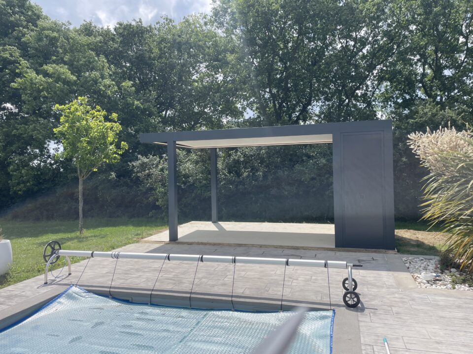 Pour ce projet, nos clients ont souhaité créer un espace extérieur fonctionnel et esthétique, en harmonie avec leur jardin. Leur souhait : installer une pergola moderne qui serve de poolhouse, tout en intégrant une future cuisine d’été sous abri.