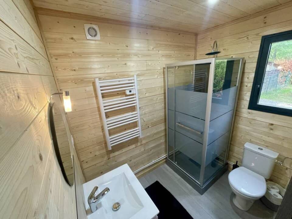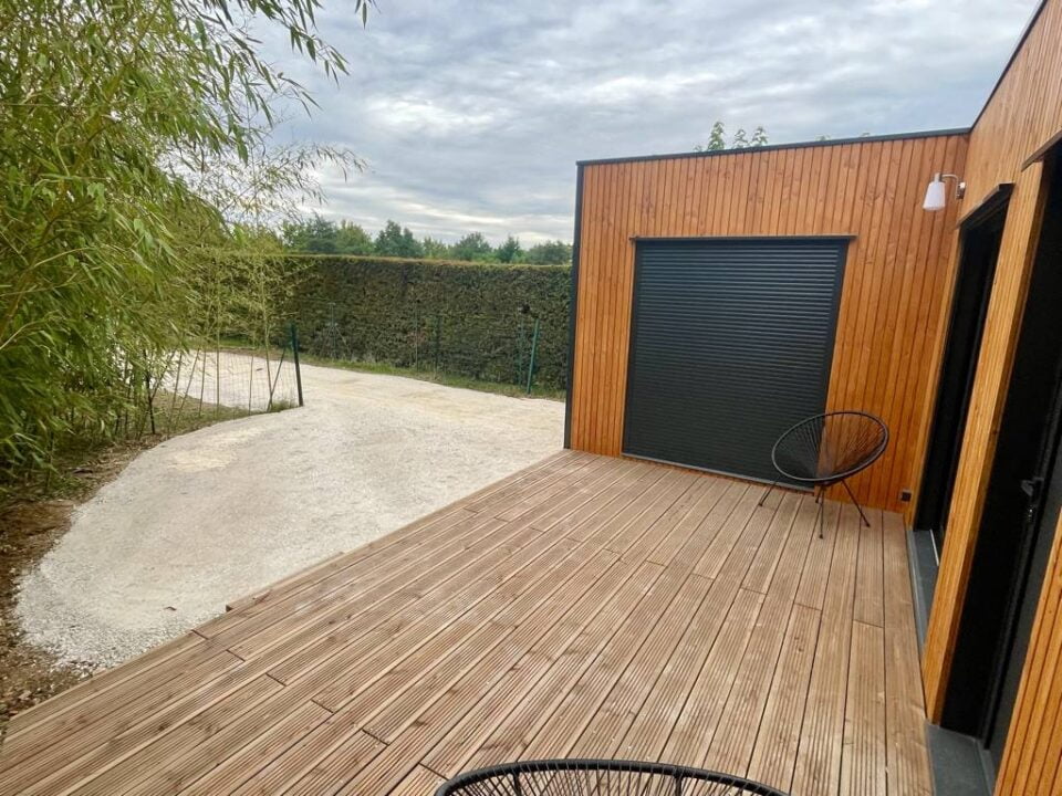 Ce studio CARRE2JARDIN de 36m2, crée et installé chez notre client à Montauban, offre aujourd’hui un hébergement tout équipé pour la location saisonnière. Une véritable petite maison en bois, avec un agencement ouvert qui rend ce chalet en bois agréable avec une ambiance Cosy, est à votre disposition pour la location saisonnière en toute indépendance. Meublé et décoré avec goût, il est équipé de toutes les commodités pour un séjour confortable ; cuisine équipée, salle d’eau avec douche balnéo, climatisation, salon et salle à manger. Les deux modules de ce studio donnent sur une belle terrasse de 18m2. La partie nuit avec une chambre pour deux personnes et sa salle d’eau, est aménagée à l’opposé du séjour, et donne également sur la terrasse par une baie coulissante.