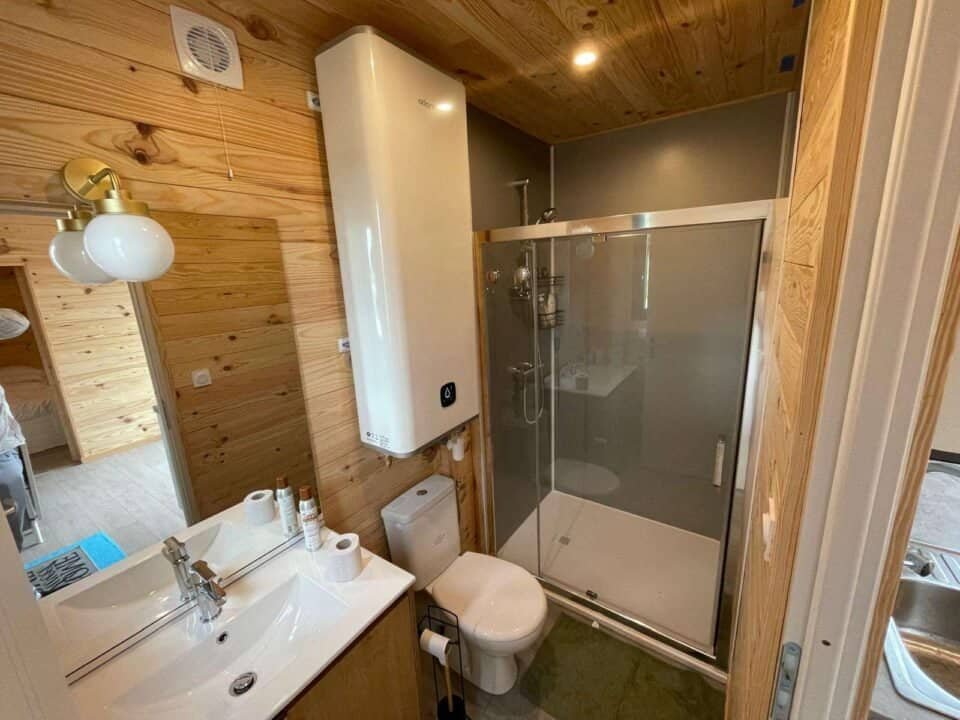 Équipements : Pompe à chaleur pour un chauffage et une climatisation efficaces, douche à l’italienne pour un confort optimal, et cuisine équipée pour une praticité au quotidien.