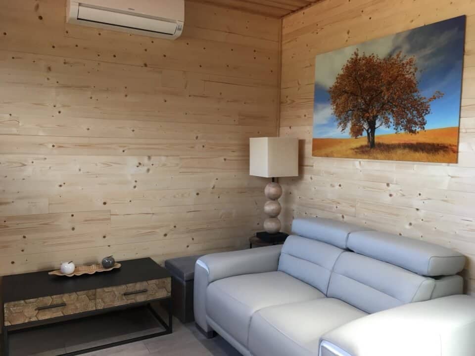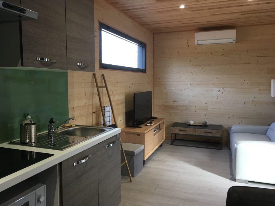 Ce studio est livré clé en main, nous y avons inclus une salle d’eau, une cuisine équipée, une pompe à chaleur, un abris de Spas.
