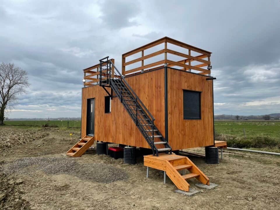 Placé en hauteur pour contempler le paysage, avec une vue à 360° depuis la terrasse, nous avons confectionné cette Tiny-house avec des matériaux bio sourcés afin de réduire l’impact Carbone.