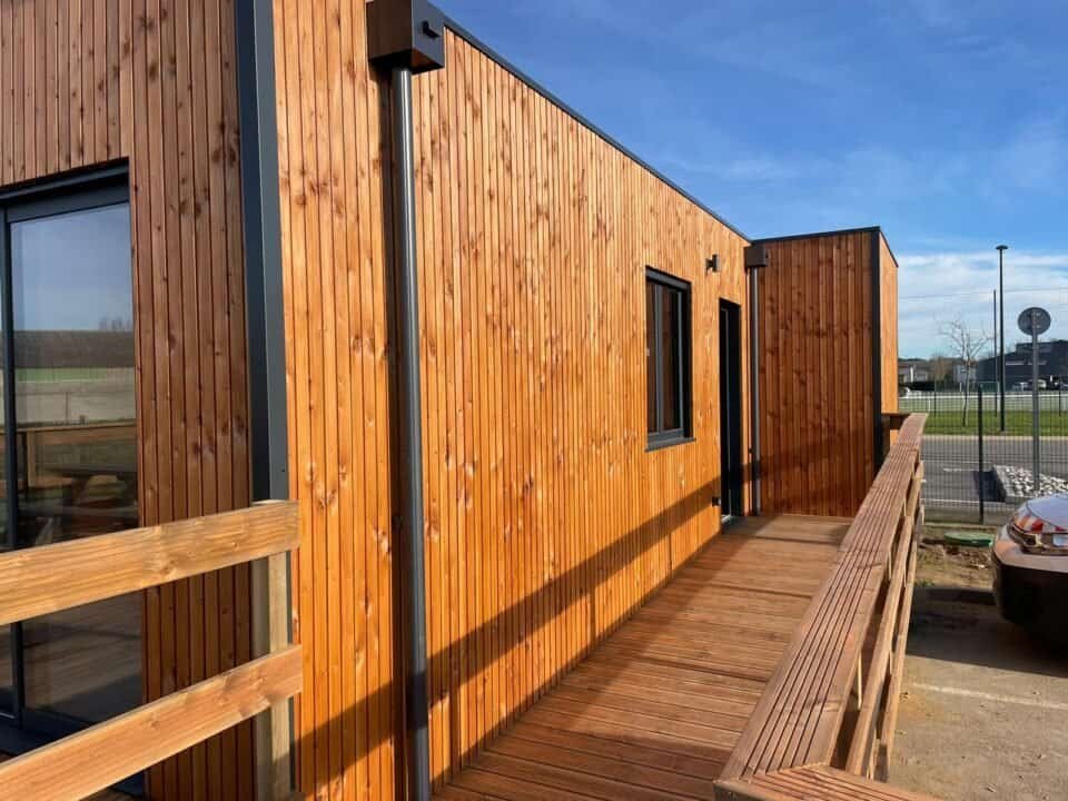 3. Durabilité et écologie : les bureaux modulaires sont conçus dans un souci de respect de l’environnement. Les matériaux utilisés sont recyclables et les processus de fabrication optimisés pour limiter l’empreinte carbone. De plus, la construction hors site minimise les déchets de chantier et réduit la consommation d’énergie liée à la construction sur site. Les fondations ont été réalisé avec des vis de fondations en acier (zéro béton), ce qui permet de conserver la perméabilité du sol.